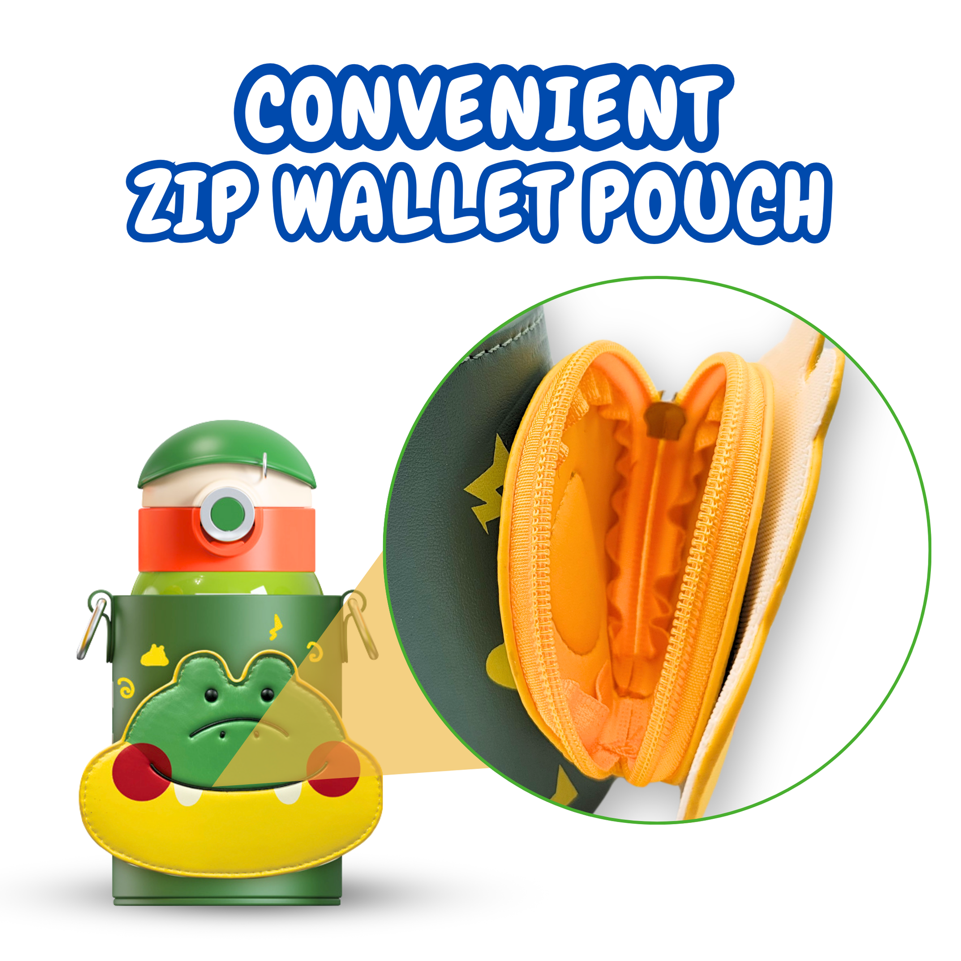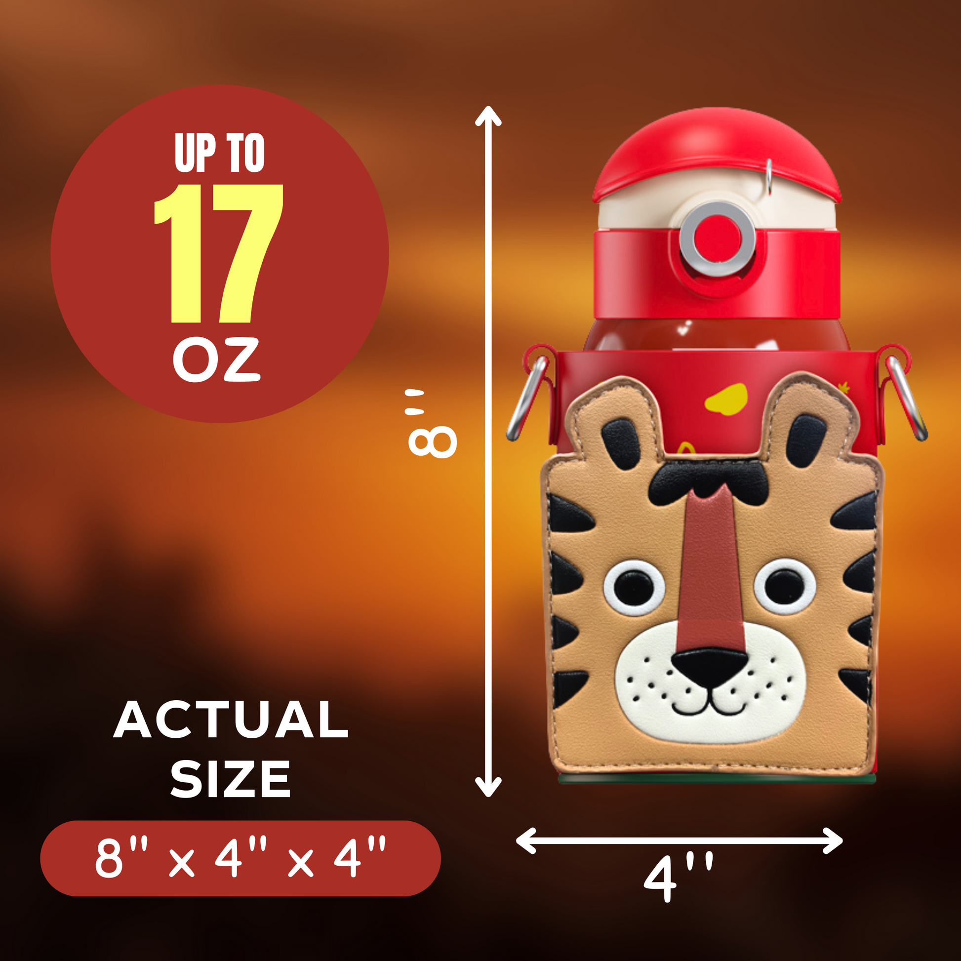Available in adorable lion, bumble bee, and alligator designs, it includes a removable sleeve that adds style and protection, keeps hands comfortable, and prevents condensation. It also features a zipper pouch for convenient storage and a hook and loop closure for secure use. The carrying lanyard makes it perfect for on-the-go adventures. Customize it with cute DIY accessories for added personal touch.